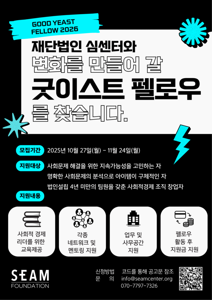 2020년 비영리 법인으로 새롭게 출발한 재단법인 심센터는 사회적경제 생태계와 더 많은 사회적경제 구성원들의 지속가능한 성장을 위해 계속해서 걸어가겠습니다.